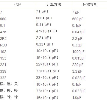 为了让大家对上述三种表示法有一个总的了解,现将表示方法及对应的计算方法和实际标称容量列于下表,供大家参考。钽电容